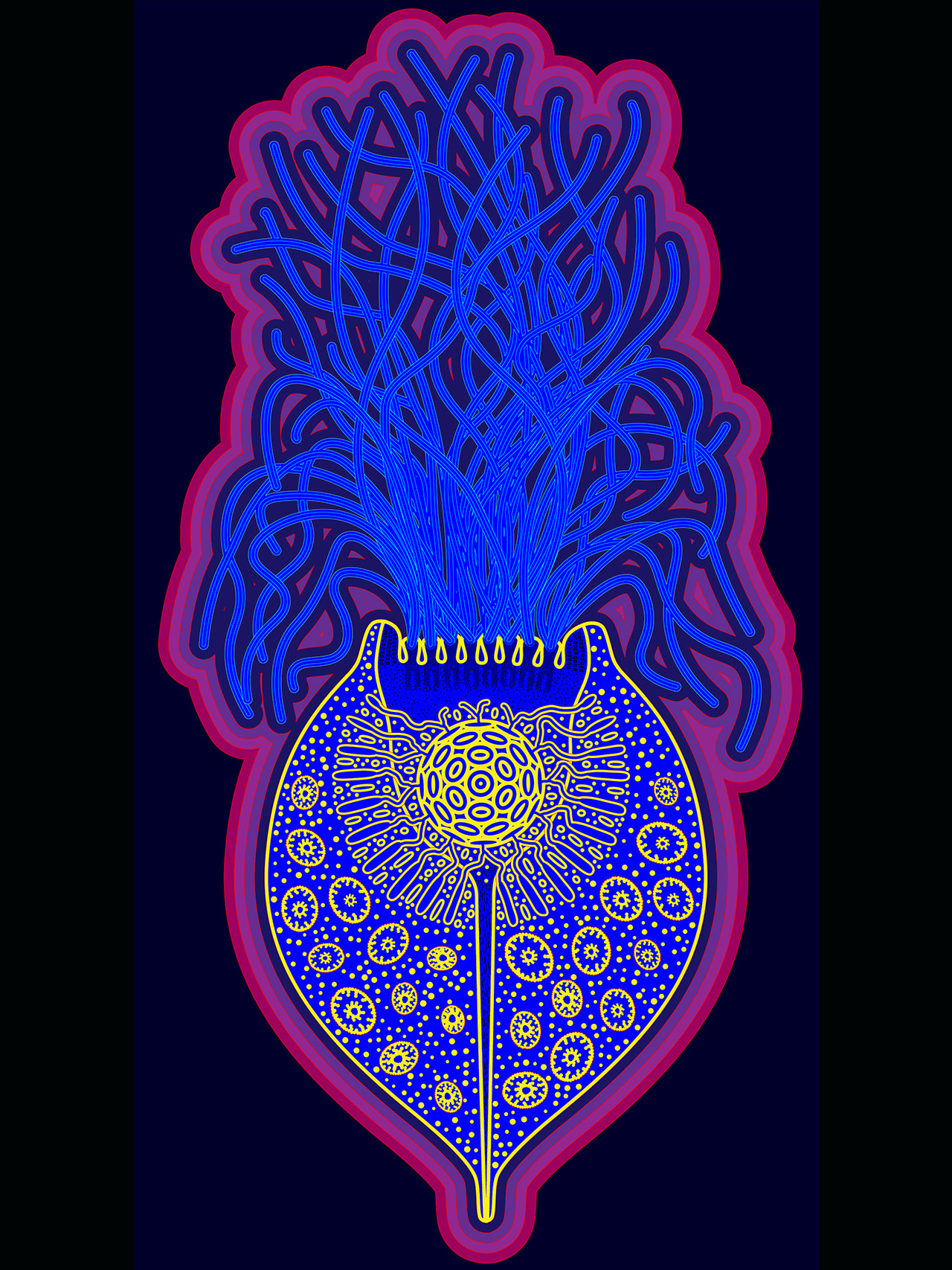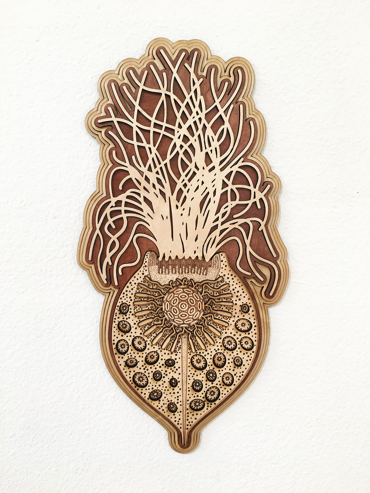 I created this piece as a present for my wife who studies protists (single cell eukaryotes), including this microscopic Lophomonas blattarum. The last image shows the digital design.