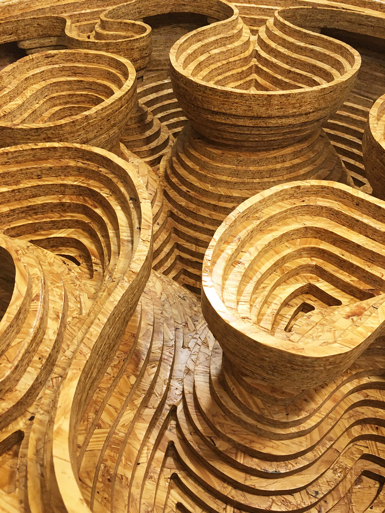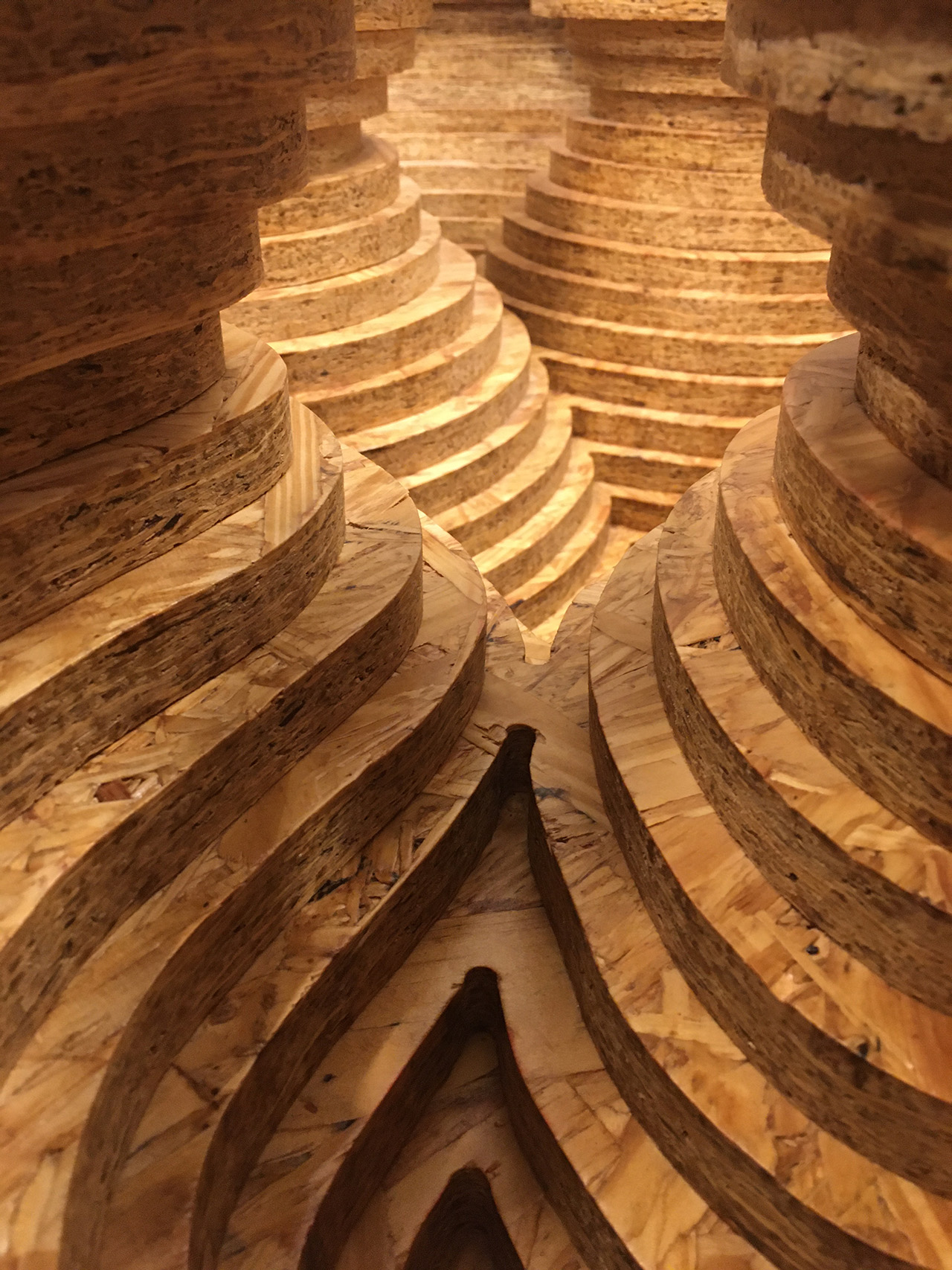 This piece was inspired by Antelope Canyon near Page Arizona. It is intended to function as an ottoman as much as a table with feet resting against the ribbed bevel. To see how it was made, see February 2023.