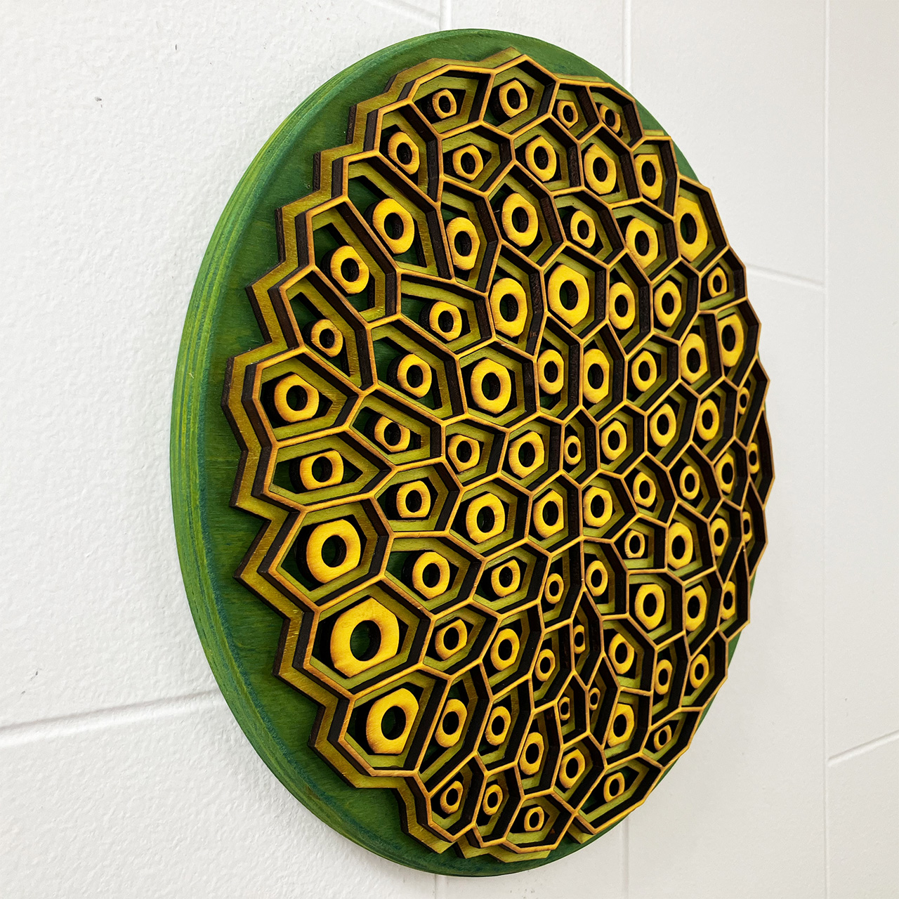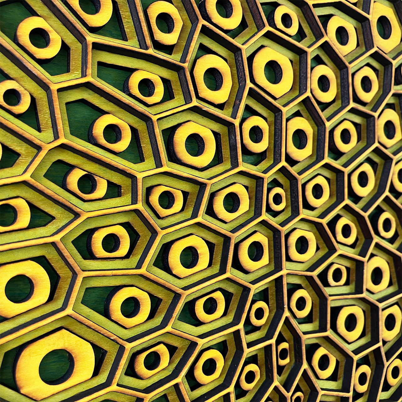 Waves of Joy in Malachite 1 | 24" x 24" x .75" | Painted Laser Cut Wood, Stained Birch Plywood BackingWaves of Joy in Malachite 2 | 24" x 24" x .75" | Painted Laser Cut Wood, Stained Birch Plywood BackingWaves of Joy in Malachite 3 | 24" x 24" x .75" | Painted Laser Cut Wood, Stained Birch Plywood Backing