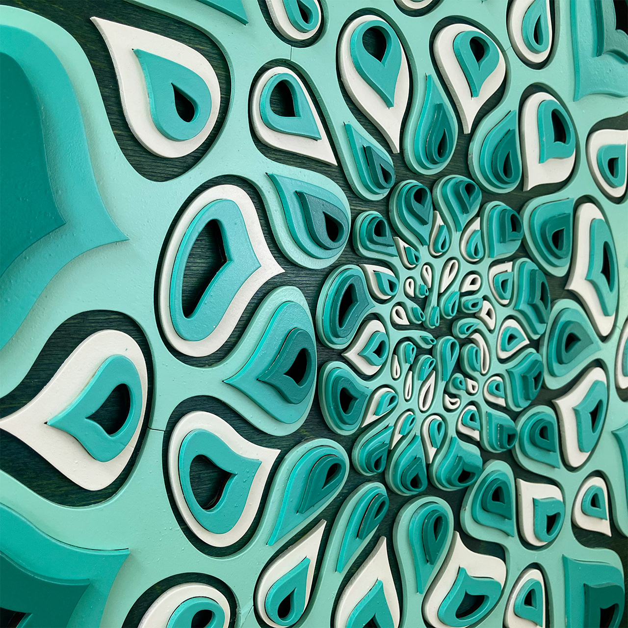 Waves of Joy in Malachite 1 | 24" x 24" x .75" | Painted Laser Cut Wood, Stained Birch Plywood BackingWaves of Joy in Malachite 2 | 24" x 24" x .75" | Painted Laser Cut Wood, Stained Birch Plywood BackingWaves of Joy in Malachite 3 | 24" x 24" x .75" | Painted Laser Cut Wood, Stained Birch Plywood Backing