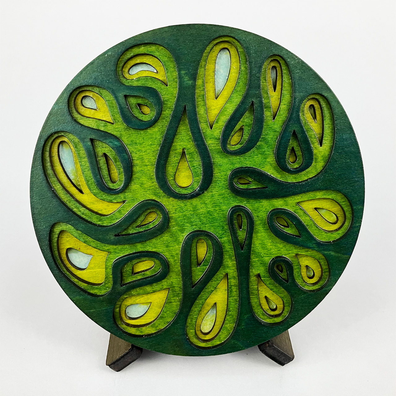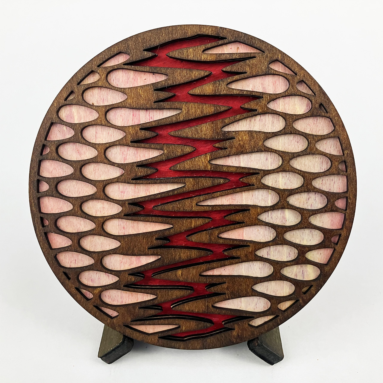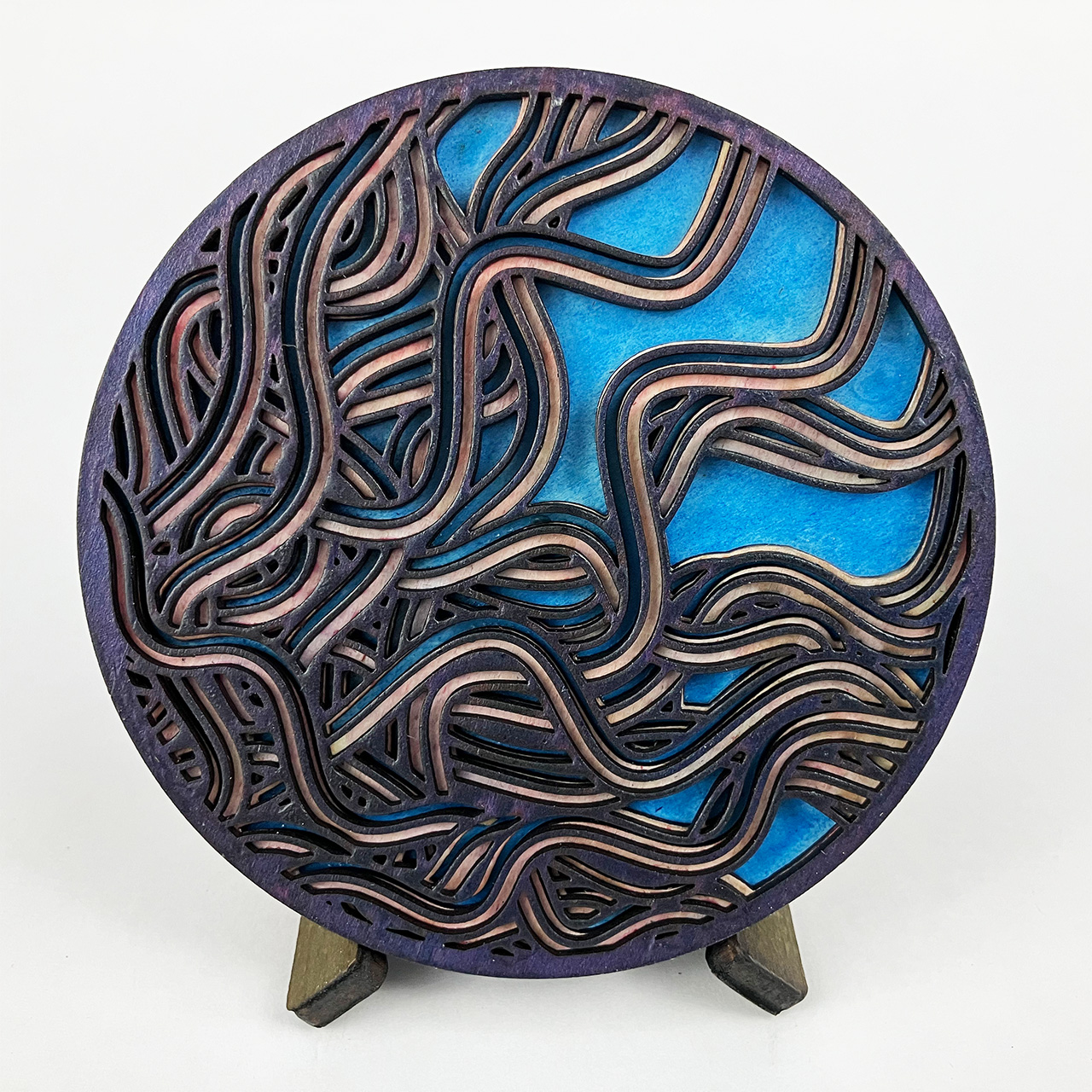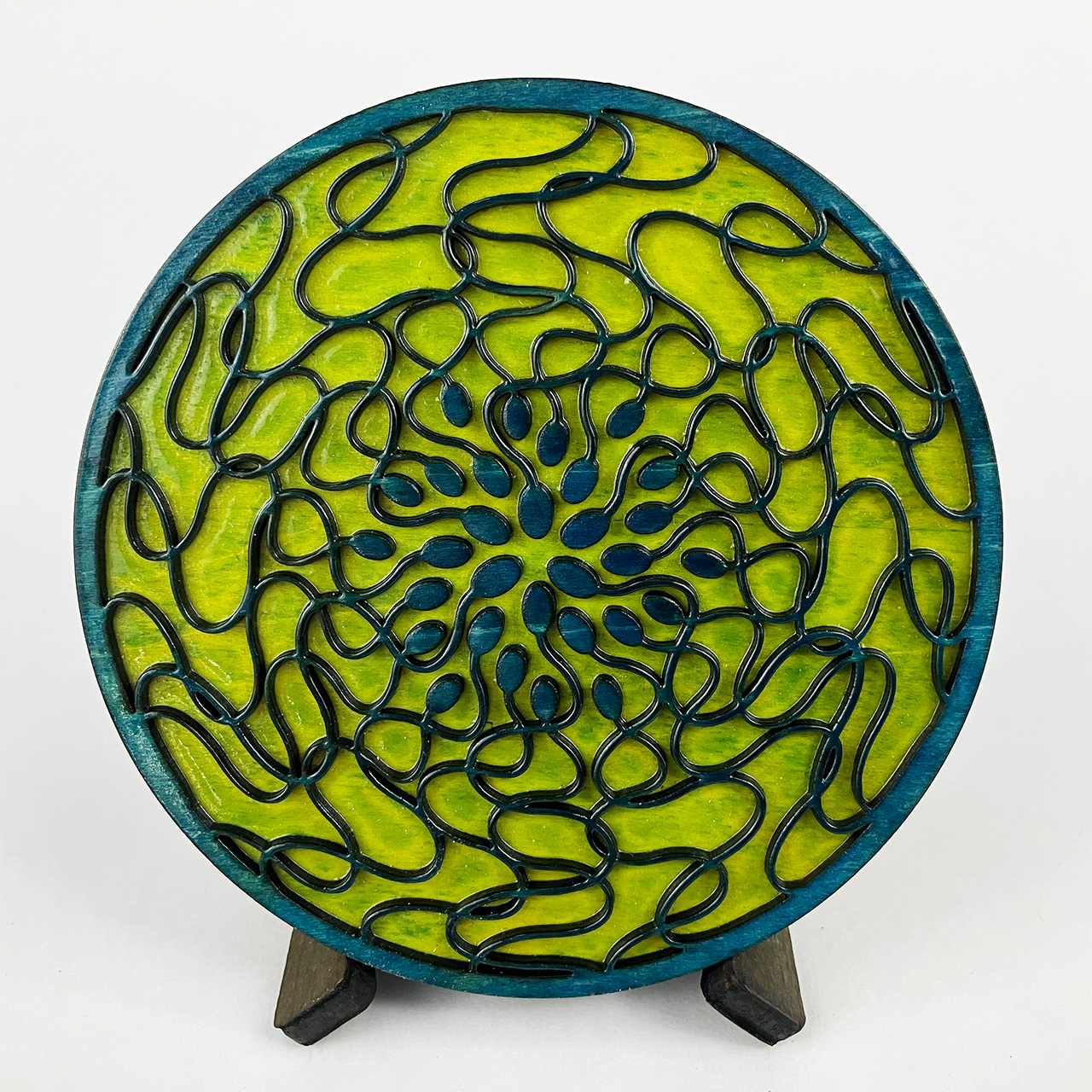 This month, I continued with a series of coasters based on paintings as I described last month. I also scaled up some of the designs to 12 inches.