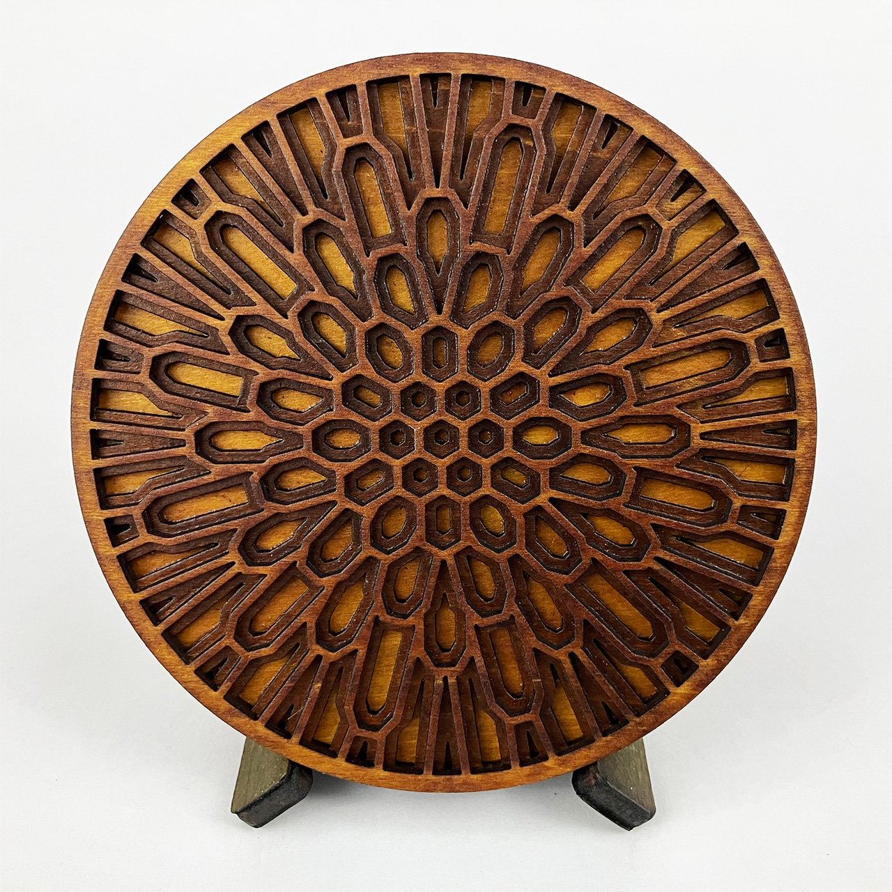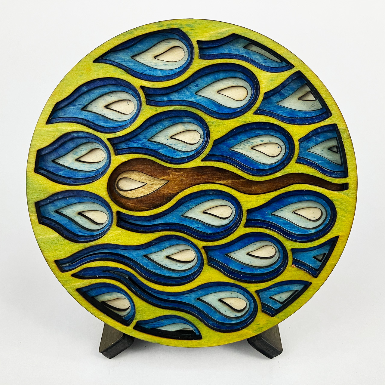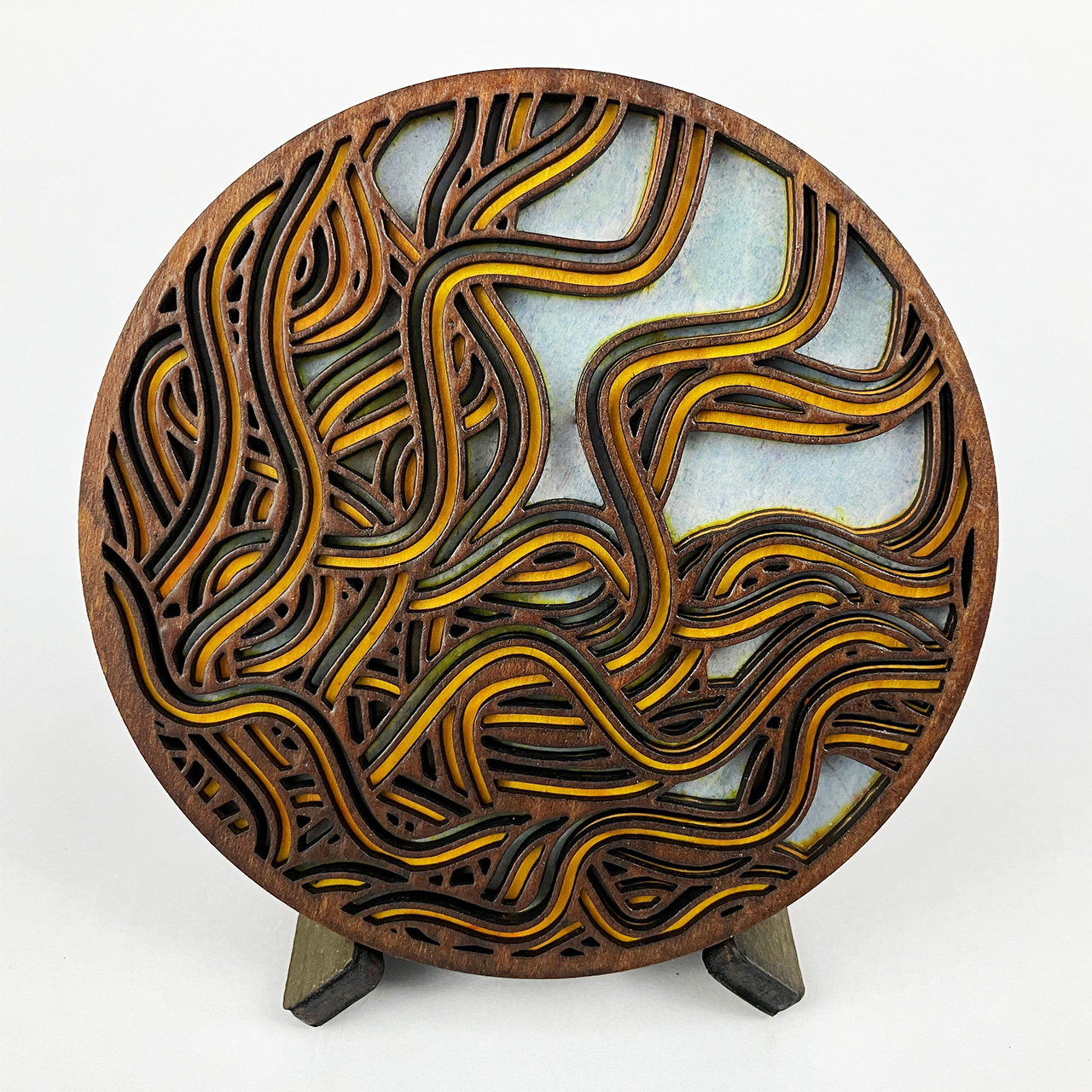 This month, I continued with a series of coasters based on paintings as I described last month. I also scaled up some of the designs to 12 inches.