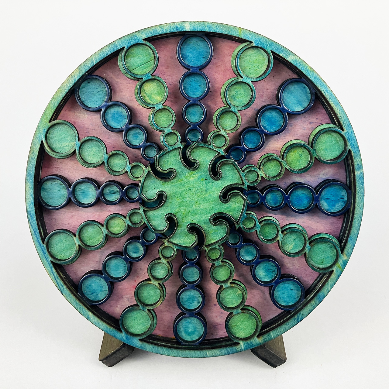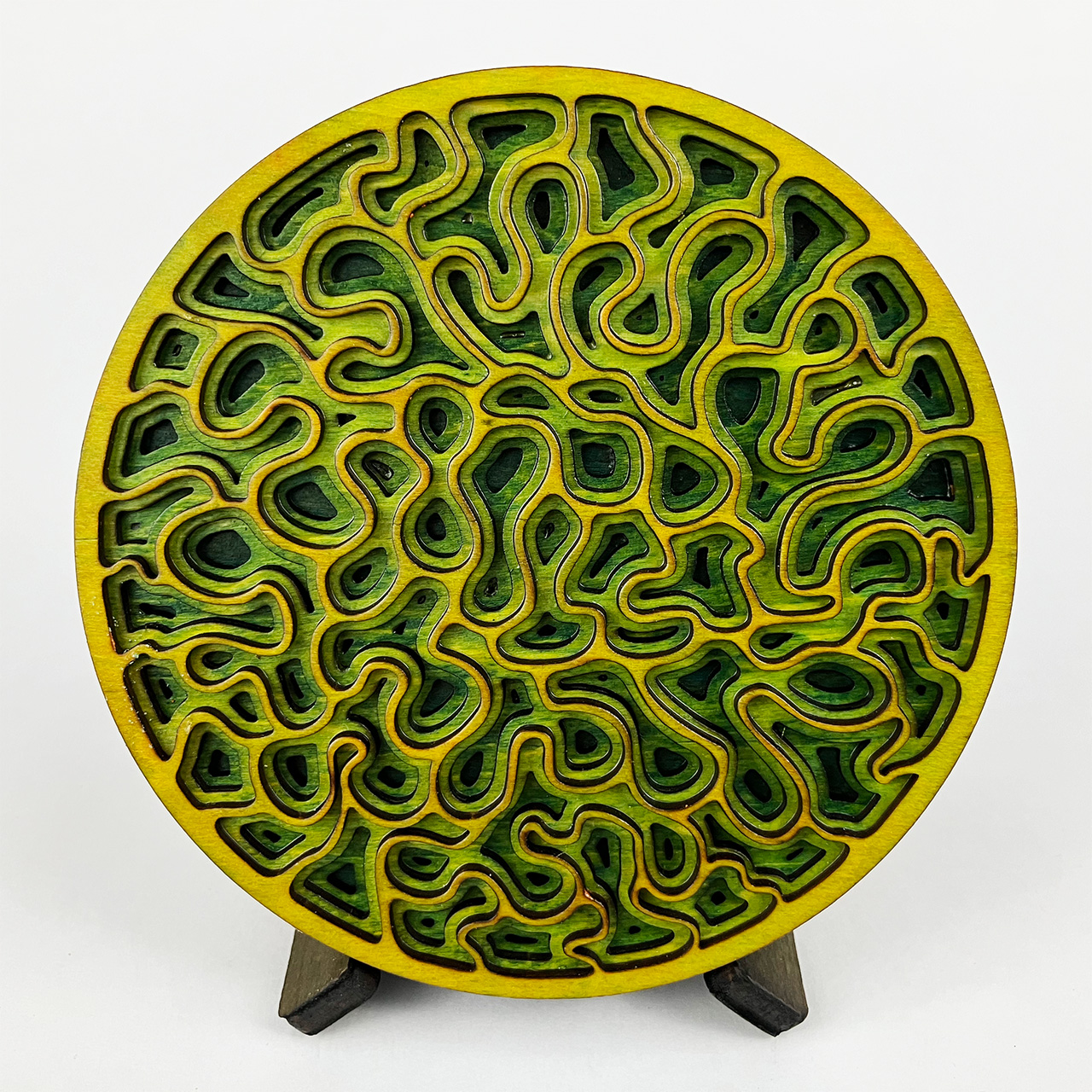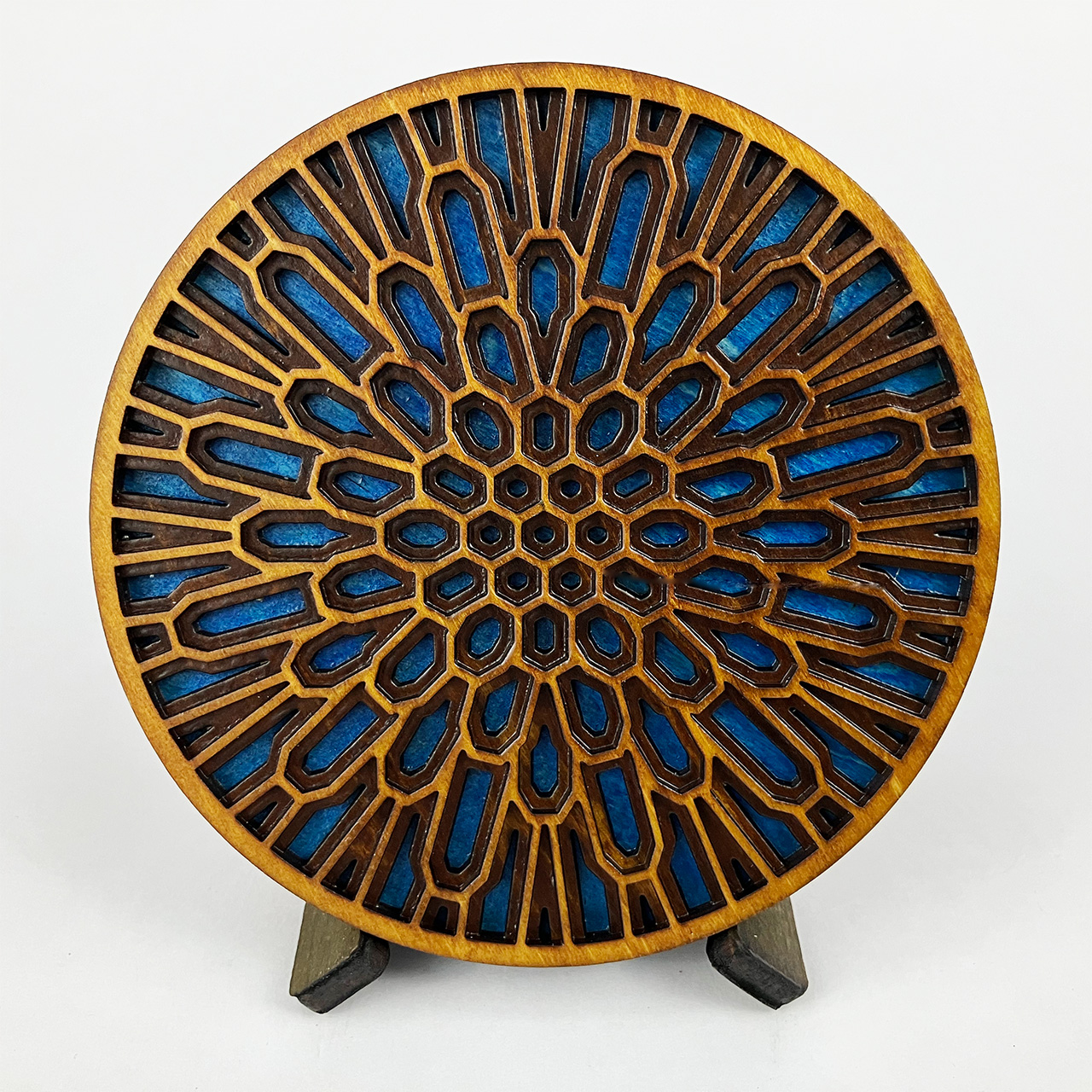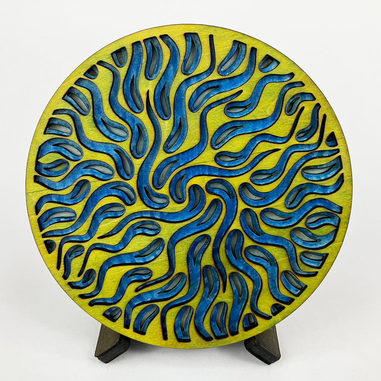 This month, I continued with a series of coasters based on paintings as I described last month. I also scaled up some of the designs to 12 inches.